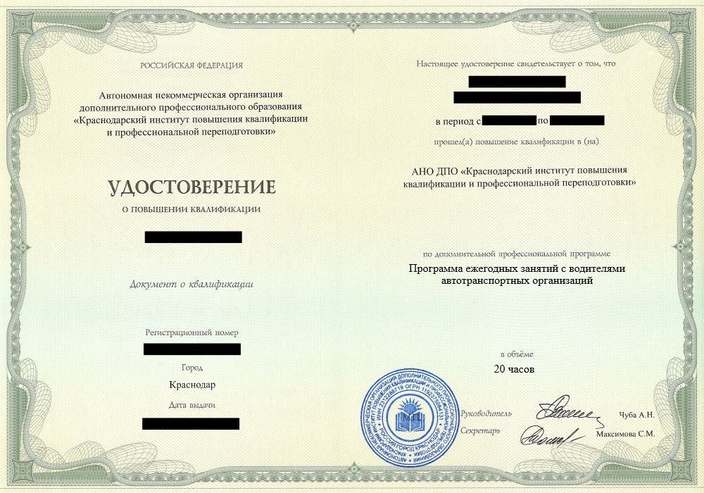 - Сертификат (при отсутствии среднего профессионального или высшего образования)