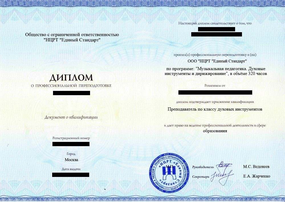 - Диплом о профессиональной переподготовке установленного образца